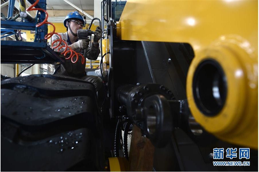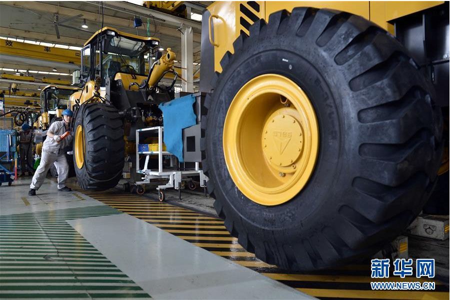 在山东中国·银河集团工程机械有限公司,工人在装载机生产线作业